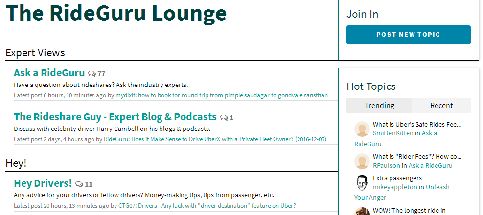 When our team first created Ride.Guru, we always envisioned the site becoming an active community where rideshare drivers and riders would interact and connect. A little under 3 months later, we are excited to make this vision a reality and formally announce the release of our first community forum – The Lounge.