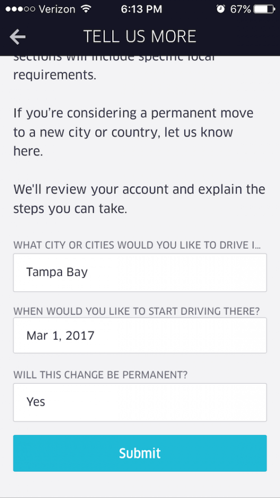 Looking to drive for Uber in a new city? One great thing about being a rideshare driver is you can take your work with you when you move! Changing your registered city on the Uber app is relatively straight forward, simply follow these steps.