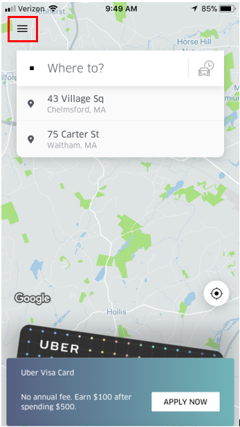 1. Open the Uber app on your phone. Ensure that you are logged in to your account.