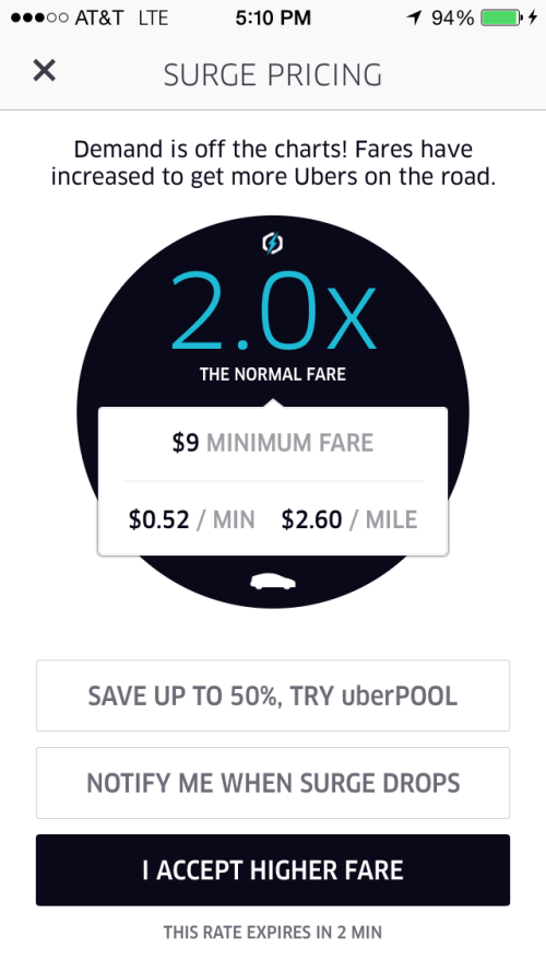 When the surge screen shows up in the Uber app, there are three options listed, similar to the screen below.