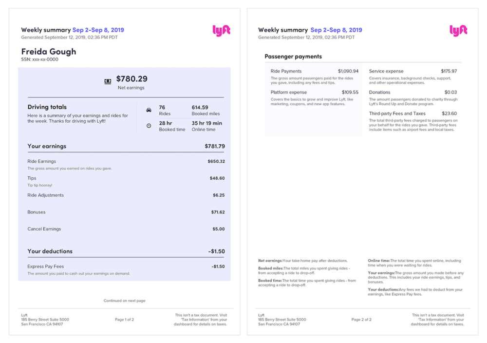 “We want to make sure there’s never any confusion about how much you earn throughout your week,” Lyft said in their blog post. “That’s why we’ve developed a clearer, more comprehensive view of your pay details. You’ll soon see a weekly pay statement in your Driver Dashboard.”