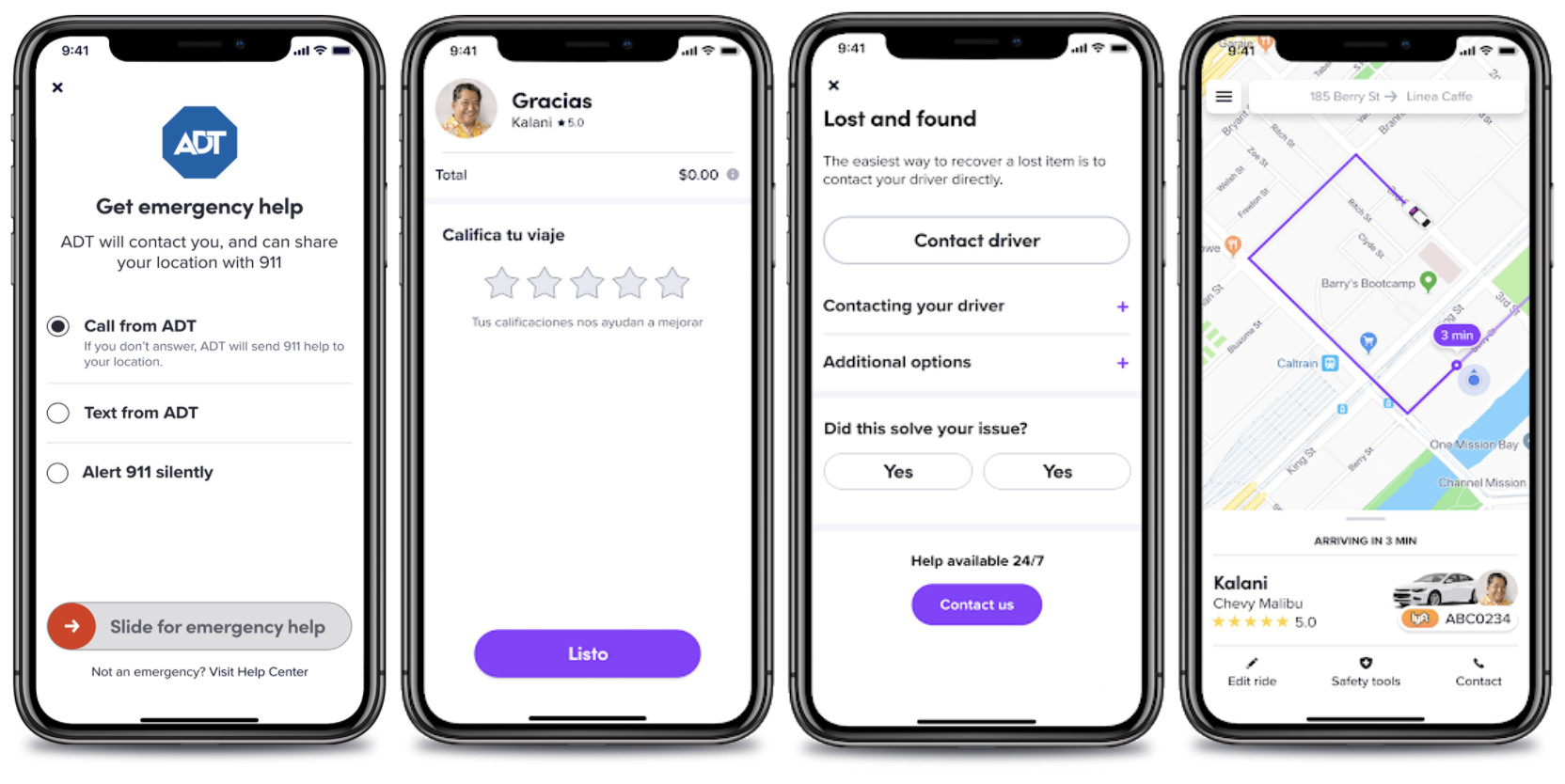 Provide advanced safety features: Riders can have greater peace of mind with access to in-app safety tools such as the ability to share ride details with a loved one or alert 911 silently with Emergency Help, supported by ADT.