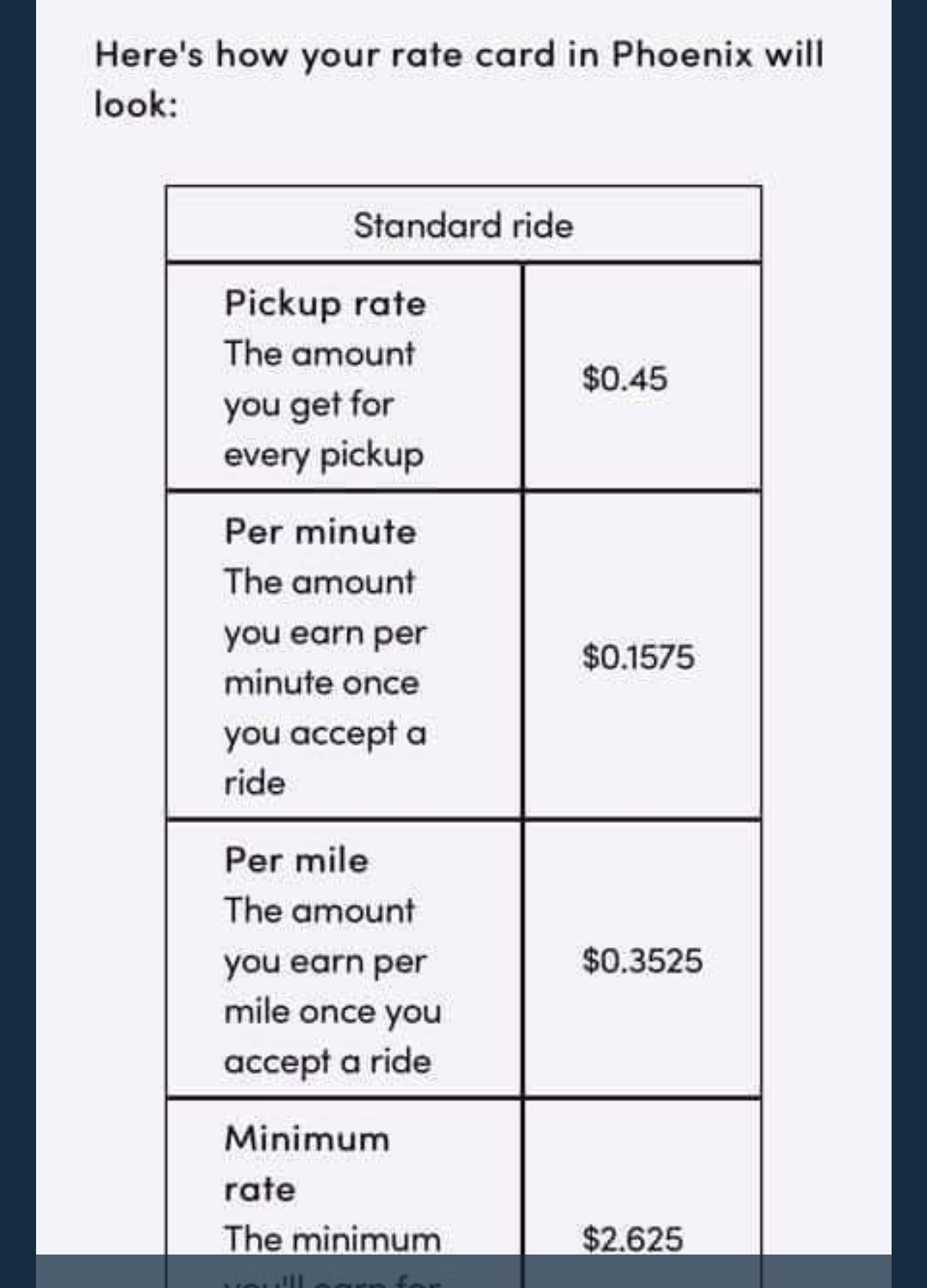 Yes for the driver, most rides are at a loss with these rates. Not for Lyft or Uber though. Take a look at the rate cards I posted for Vegas and Phoenix, unconscionable!