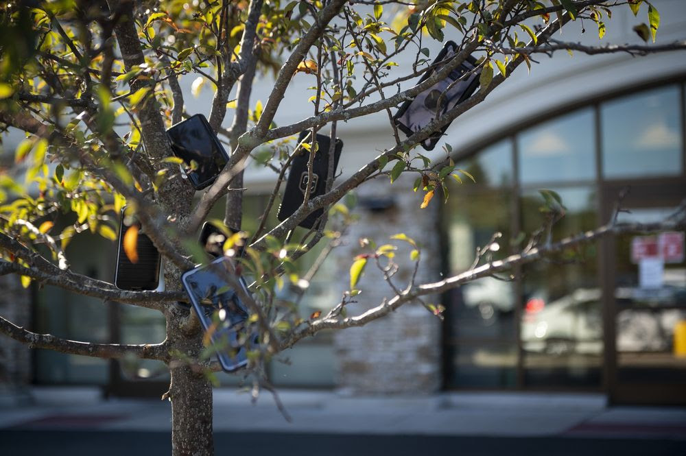 Awesome. What time to be alive. Cell phones hanging from trees.