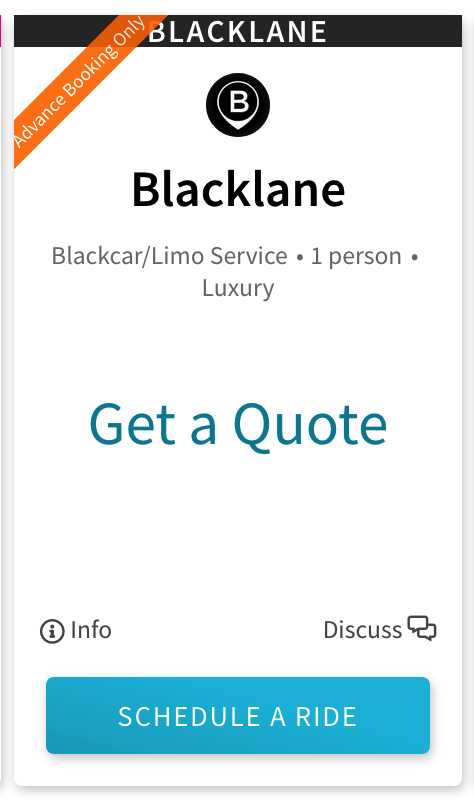 Having said that, in most places now we already offer links to limo companies on our fare calculator, where you can at least see what's available in the area and then go to their website for a firm quote. You will see cards like this in those cases: