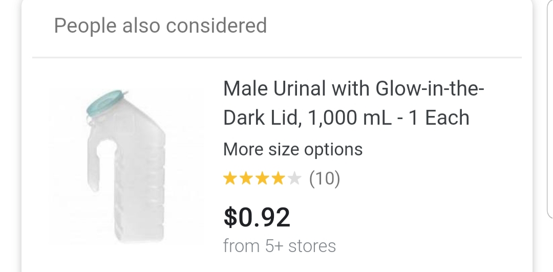 Bet that purple one is more than .92:) Plus you would need an additional container to catch the pee. Then would have to hope you can dispose of it before you get next rider. Car would be smelling like piss. Ill stick with Bathrooms. I am not 16 yrs old anymore drinking in the woods and squatting:) I also prefer running water and soap to wash my hands.