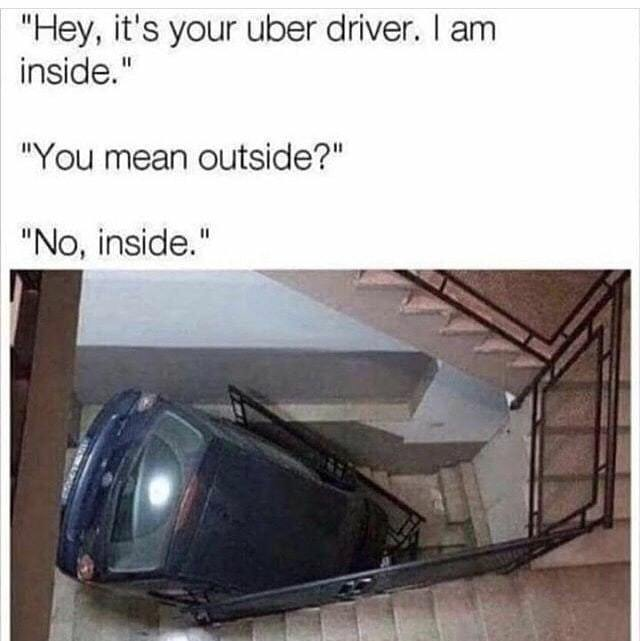 "Hey, it's your Uber driver. I am inside."