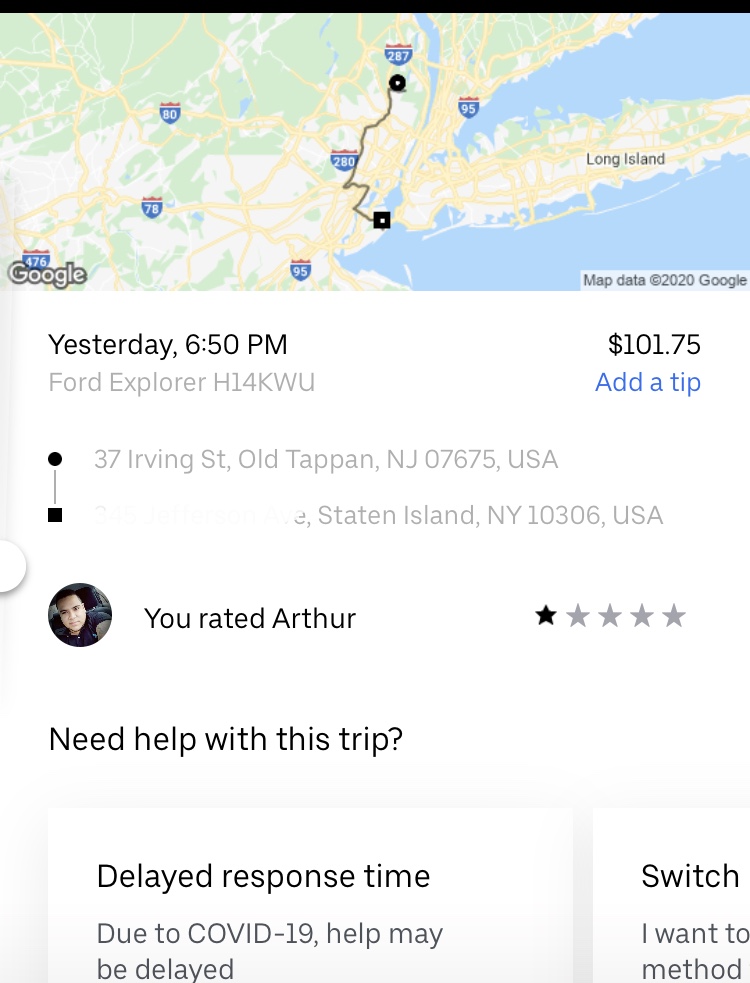 Imagine taking an Uber who refused to continue the ride midway because I told him he missed one of the stops, showed him in the app and leaves you and your 4 year old who is double casted on two feet midway in the middle of the trip on the roadside. Asshole Mikey from New York HONDA Accord KHB413*