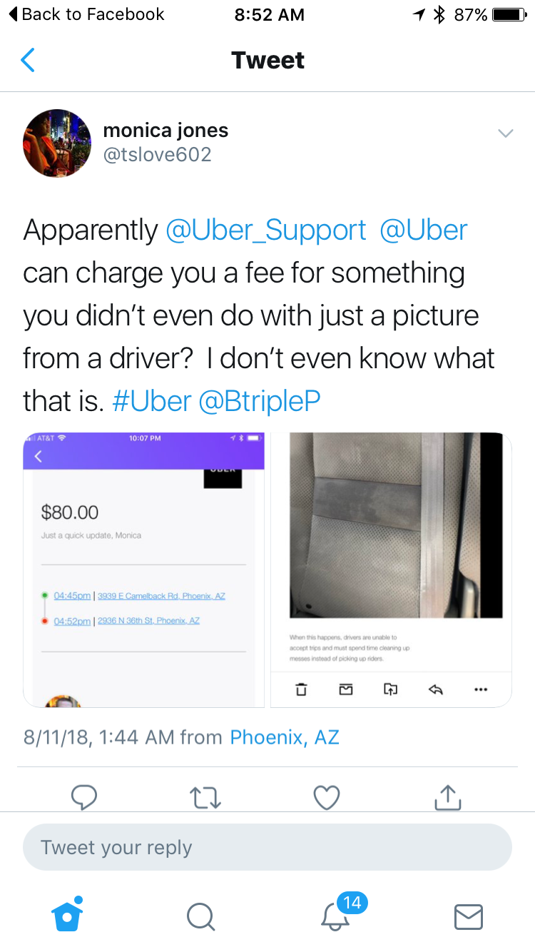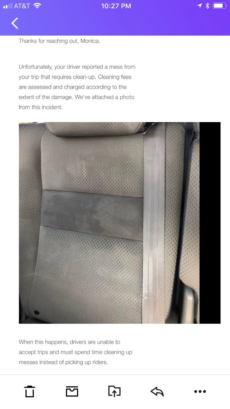 It looks like water on a seat. I wonder if Uber even looks at the photos or some machine just decides whether to charge the passenger.