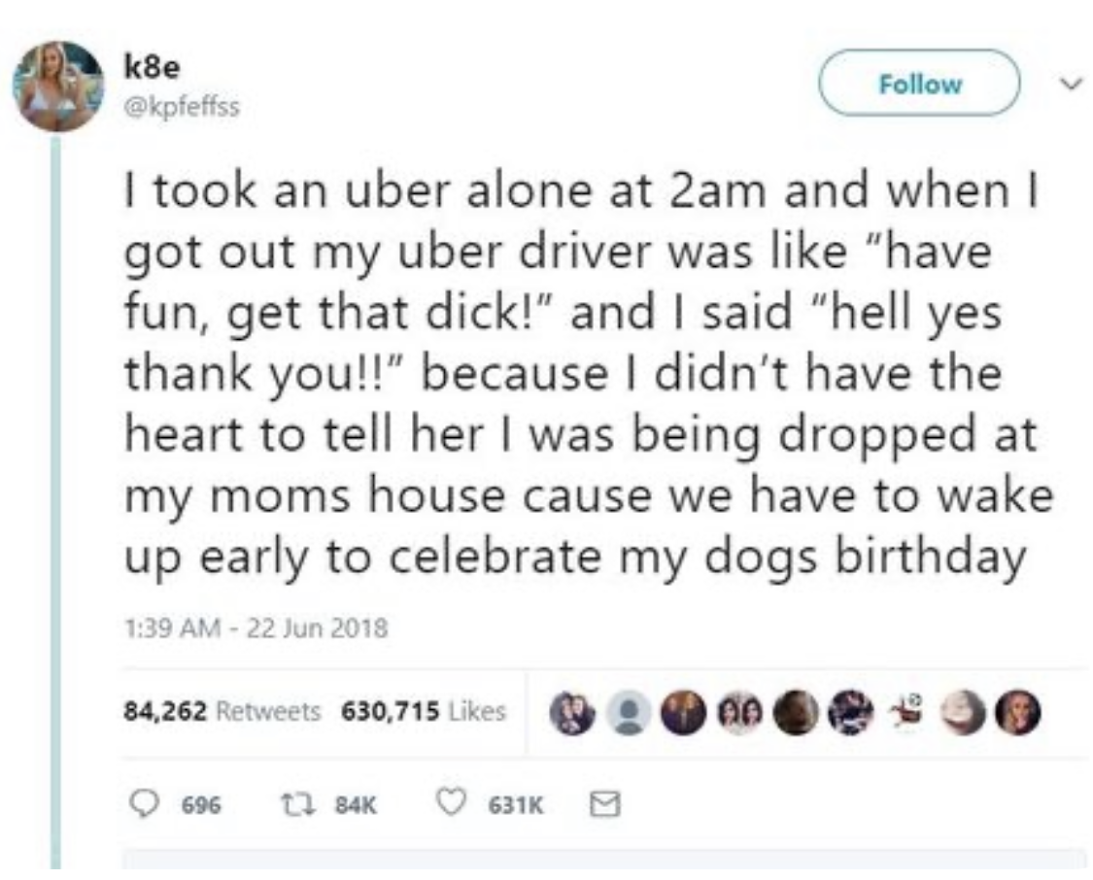 Taking an Uber alone at 2AM and the diver yells, have fun! (funny)