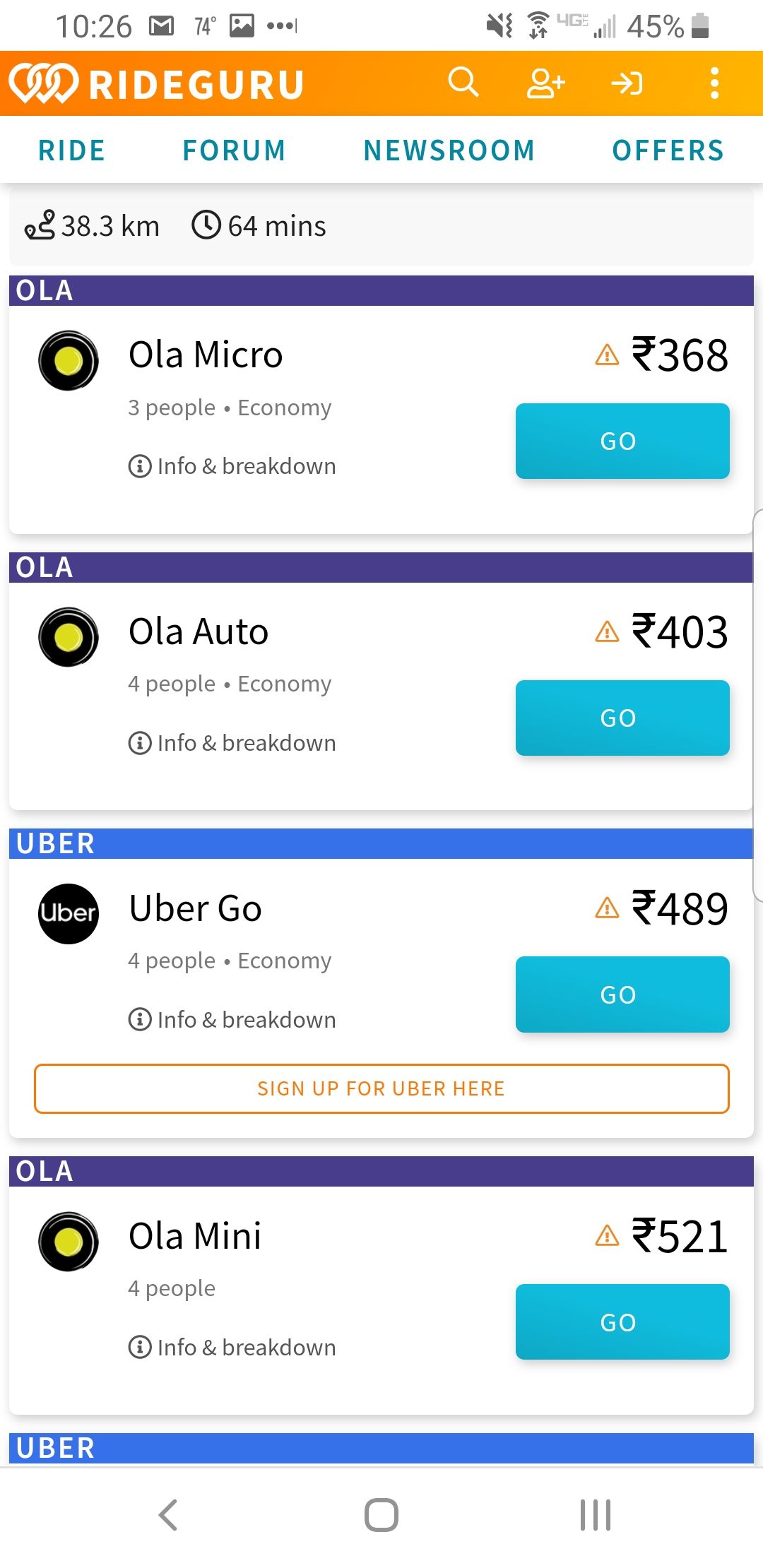 I asked for uber fare from Cochin Int'l Airport to Fort Kochi. I received a reply of $450++.