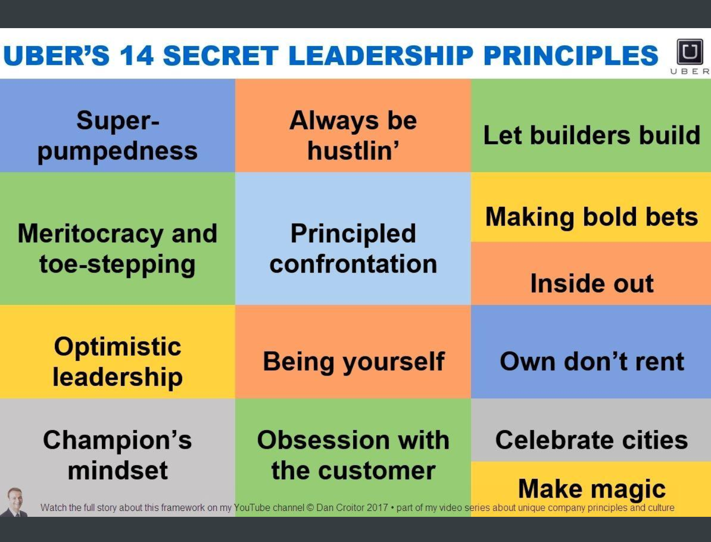 Uber's 14 principles for success in leadership, that was from their pitch deck for venture capitalists