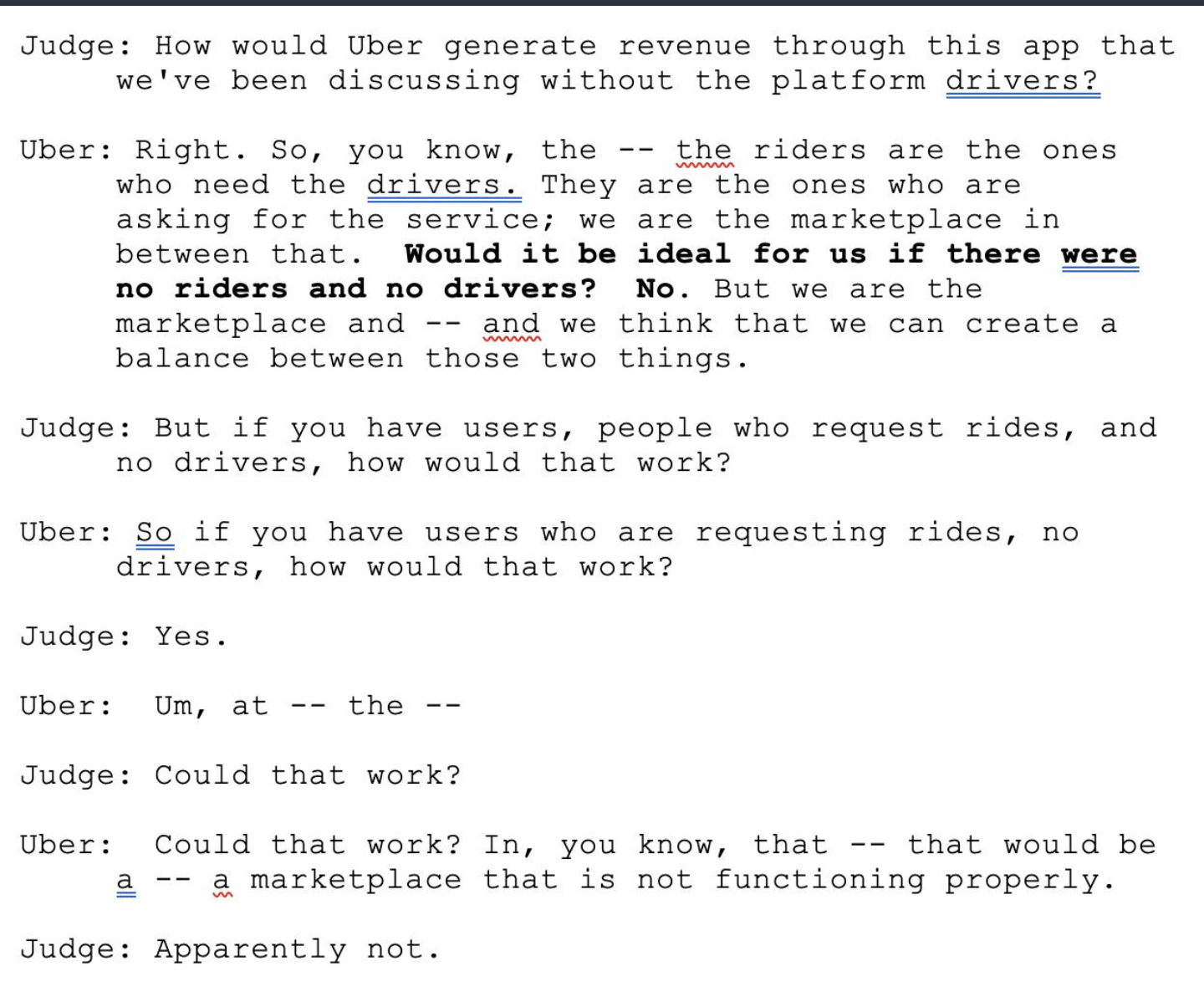 Well they have to try to make themselves look like that to skirt the ABC test. Good luck on that, not too many holes in that law. Or be an a-hole lime Tony West and tell the world that the driver isn't core part of their tech platform. Another UBER lawyer made that argument in 2017 in front of a N.Y. judge, this a an excerpt of that conversation. Priceless!