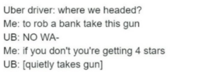 I don't see the humor in this. Taking the whole drivers love 5 stars thing a little far imo.