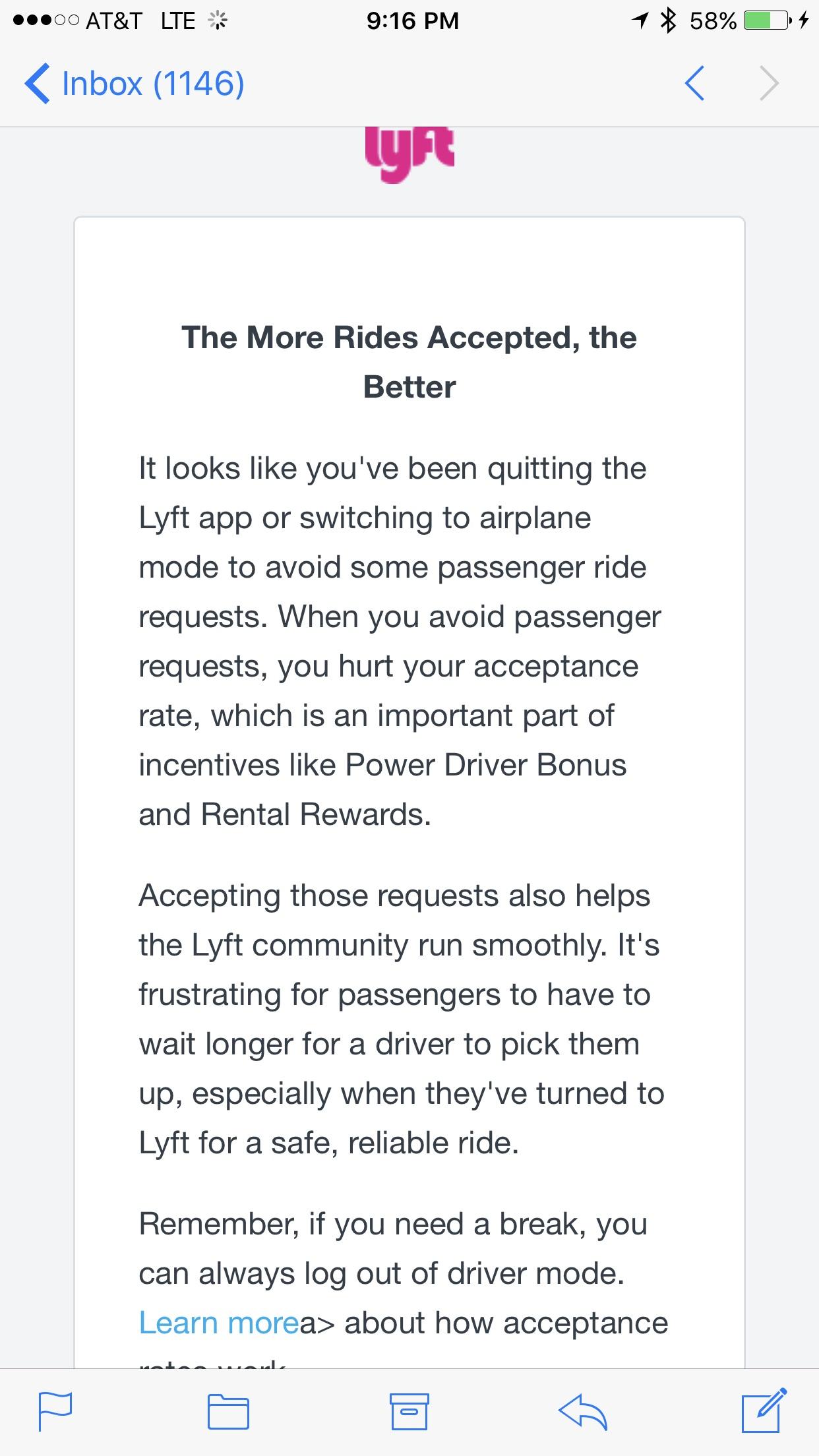 I knew it. I knew Lyft drivers were just as bad as Uber drivers. I am not quite sure what this is, but I assume it's about cancelling on riders or cherry picking rides.