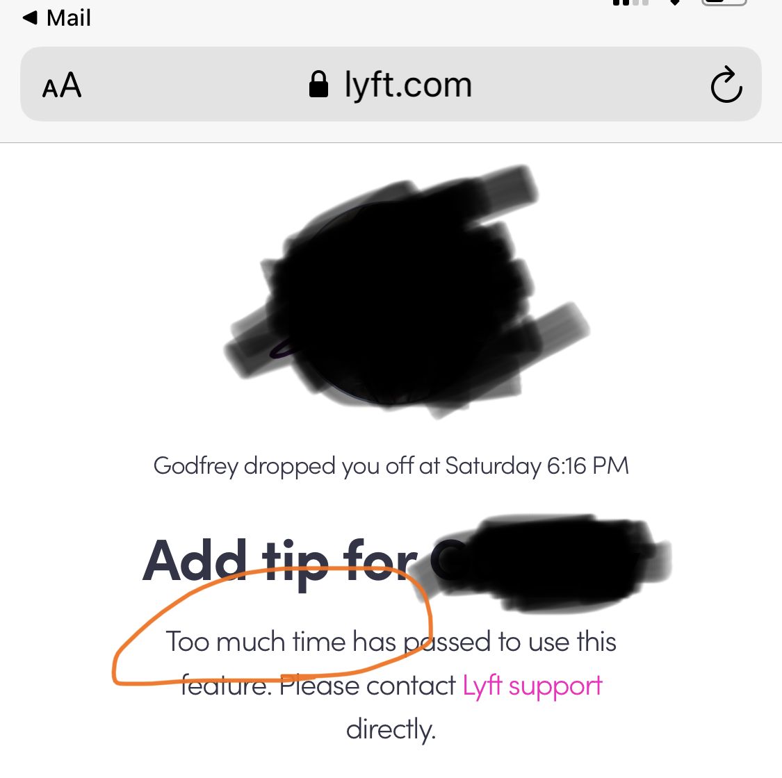 Like many, I get behind on my emails while traveling. It was Wednesday (so 3~4 days after the flight) when I saw the Lyft receipt. Great, I click on "Give tip," and it says this: